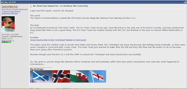 Bill Noble should be back in jail for his contemptuous violation of the terms of his parole. As regular readers of this website are well aware of, Noble was convicted of violating Section 319(2) of the Criminal Code and was sentenced to 4 months in prison. He was released two months later with strict conditions that he not access the Internet for a period of no less than 3 years. Almost immediately upon his release, Noble violated the terms of his parole by participating on Facebook, Stormfront, and running the hate website and forum for the Aryan Guard.