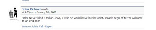 Post by John Marleau on Facebook denying the Holocaust occurred while at the same time wishing that it had. Marleau is one of the Aryan Guard members/associates who participated in the march: