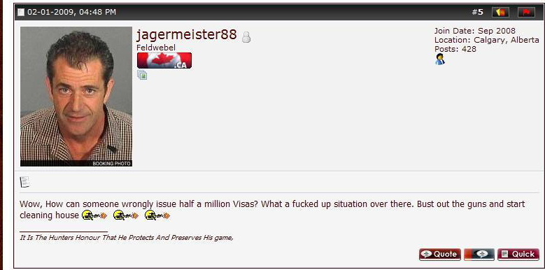 He's not finished yet. The final example from the Blood & Honour forum concerns the accidental issuing of 300,000 British visas. We don't know who Marleau suggests should be killed, the visa recipients, the government, or both: