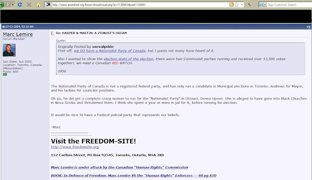 There are problems with these two explanations. First, Mr. Lemire registered on Stormfront in 2002, long before his troubles with the CHRT began. As he was born in February 1975, Marc would have been 27 years old when he registered. And as for being a podium by which Mr. Lemire could discuss his troubles with the CHRT, most of his posts occurred before 2005 when things began to heat up and a complaint officially filed against him. Marc posted on Stormfront when the complaints were filed against him.