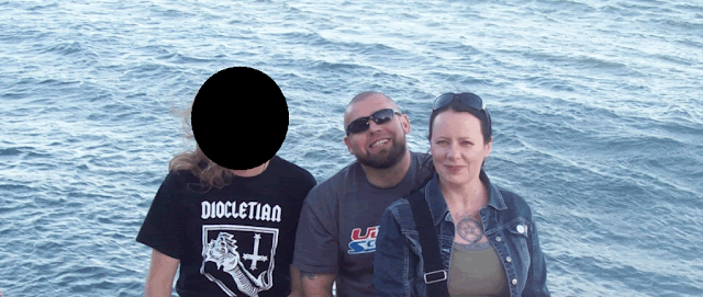 The photo, which has been circulating around the Net for a few years now, set off a bit of a feud between Cahill and Gaede (so much for the "unity" part of Women for Aryan Unity we guess). Later, there was a fight over some of Lane's ashes, as Cahill accused Combat 18 in Australia of having stolen the ashes and demanding they be returned.