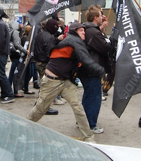 But really, Noble and the rest of the boneheads need anti-racists to be violent. When they aren't they will simply claim they are and assume that this statement is accepted as fact. And when we humbly suggest that the neo-Nazis are the ones who engage in violence, the claims are either dismissed or rationalized (i.e. they were acting in self-defence).