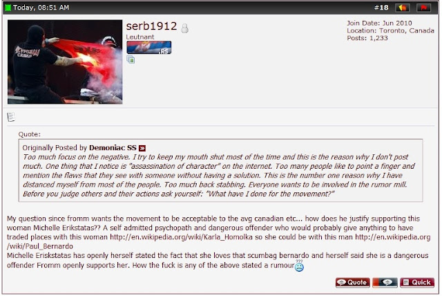 A second bonehead then chimes in to complain about Paulie's promotion of Paul Bernardo groupie Michelle Erstikaitis as a "White Nationalist" political prisoner: