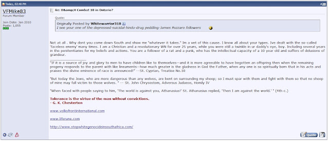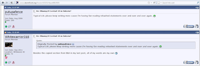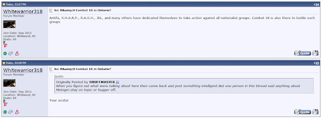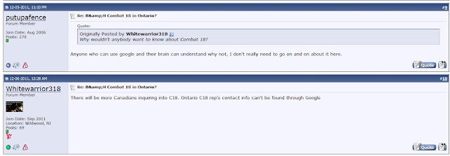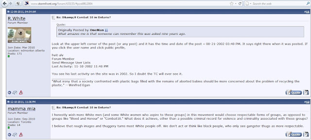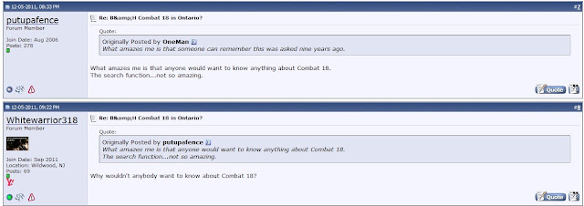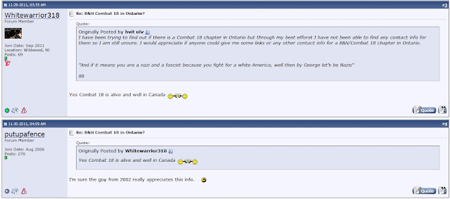 It starts out with two posts made in August 2002 asking if there was a Combat 18 chapter in Ontario: