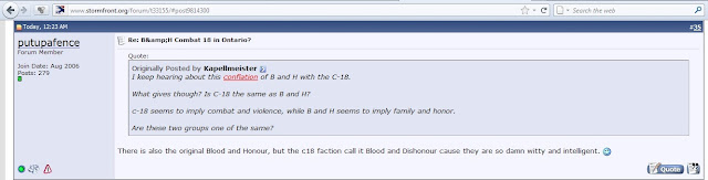 Of COURSE we managed to catch the screen shots! And given what is currently happening in Vancouver with the three Blood & Honour members accused of a series of vicious assaults, we're not sure that Blood & Honour, either faction, needs any more bad publicity.