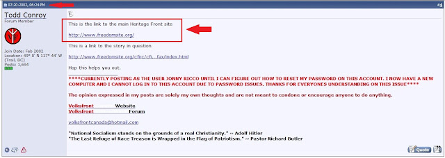Well, you could take the advice of Todd Conory, a former leader of Volksfront Canada, and go to the Heritage Front website which he posts and which also happens to be the same as Lemire's Freedom-Site.