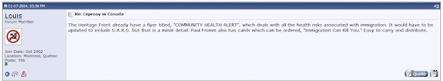 And didn't the Heritage Front mention something about this on their website under the heading, "Heritage Front Warns Hamilton Residents of Threat Posed by Immigration"?