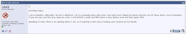 To state that Louis Morin was the leader of the Kingston chapter of the Heritage Front is a bit grandiose, since by this time he was really the only remaining member of the group in Kingston aside from a few hanger-ons. But what he lacked in numbers, he made up in commitment to the cause..... such as it was.