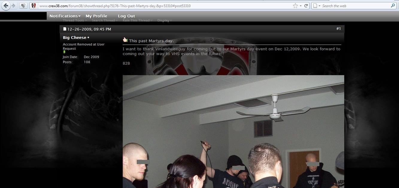 We can't be sure exactly when Shawn had his account removed, though it is likely he did so around the time he was deleting his posts (and the entire Canadian section) from the Blood & Honour forum he helped moderate. Also, changing your name from, "Big Mac" to "Big Cheese" really isn't fooling anyone.