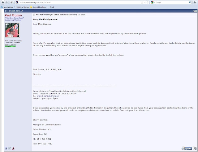 On this Stormfront thread, Bahr and other "White Nationalists" discuss how they will proceed and, once the campaign was over, brag about the success:
