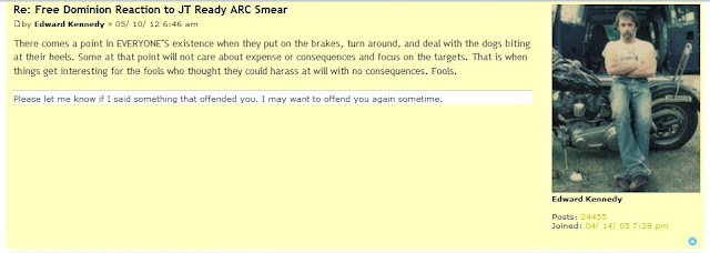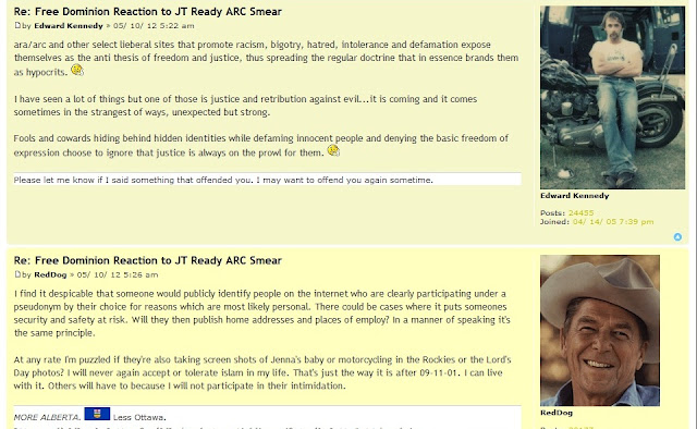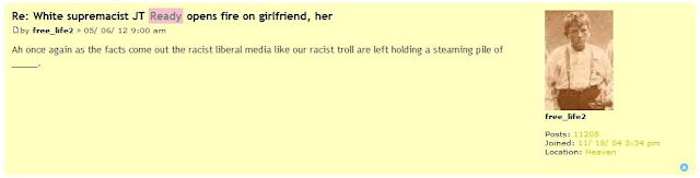It didn't take too long for one of our most faithful readers to report back to our friends at Free Dominion regarding our post on their reaction to the JT Ready murders/suicide here: