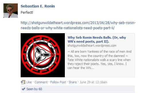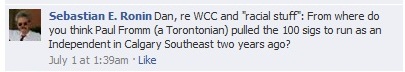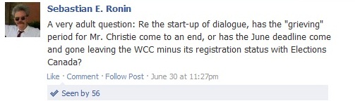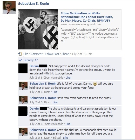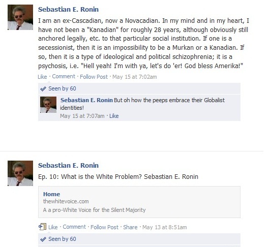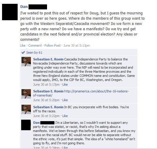 Of late Ronin has been monopolizing Doug Christie's Western Block/Western Canadian Concept Facebook group and promoting his group: