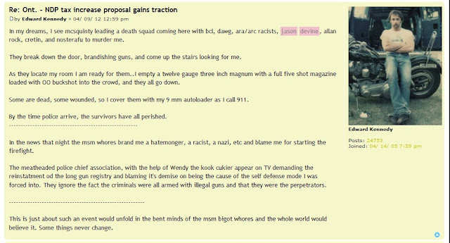 In the meantime, the Fourniers continued to allow their resident murder fantasist Edward Kennedy to make threats against ARC with impunity for years (only a few examples):
