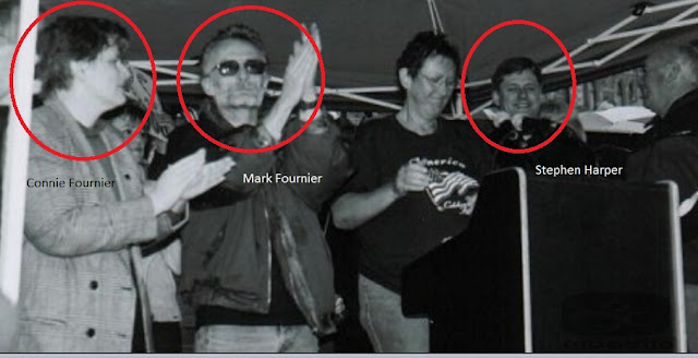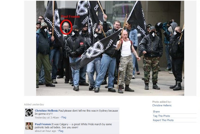 We also sort of have to giggle when Mark Fournier suggests ARC (none of whom attended the rally) marched arm in arm with members of the violent Aryan Guard at a pro-Palestinian rally (never mind the Aryan Guard were there for only a few minutes before being chased off.... but long enough for their photos to be taken) when the Mark and Connie themselves are buddies with someone who actually DID march arm in arm with the violent Aryan Guard: