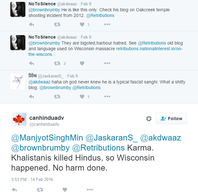 | Justifying murder of Sikhs in Wisconsin temple |