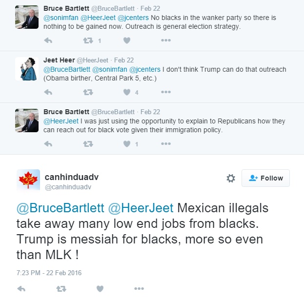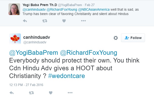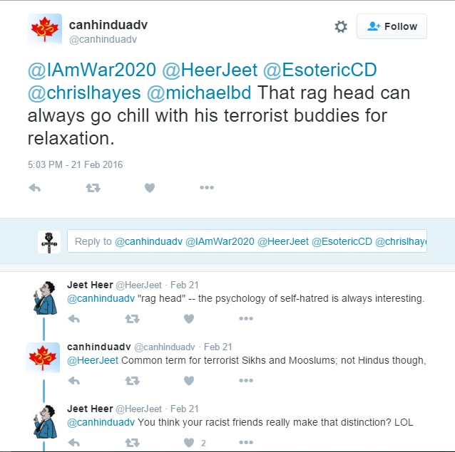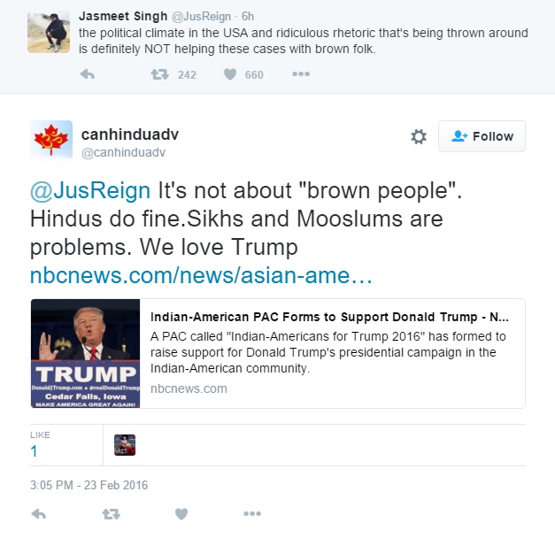 The last screen shot is actually fairly interesting. He references South Carolina governor Nikki Haley who has endorsed Marco Rubio and has spoken out against Trump. Ms. Haley was born to a Sikh family but who converted to Christianity. One would think that in Banerjee's warped mind, this would be a plus.