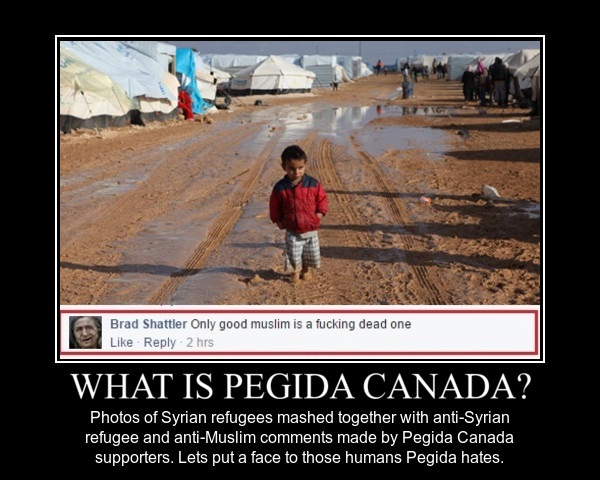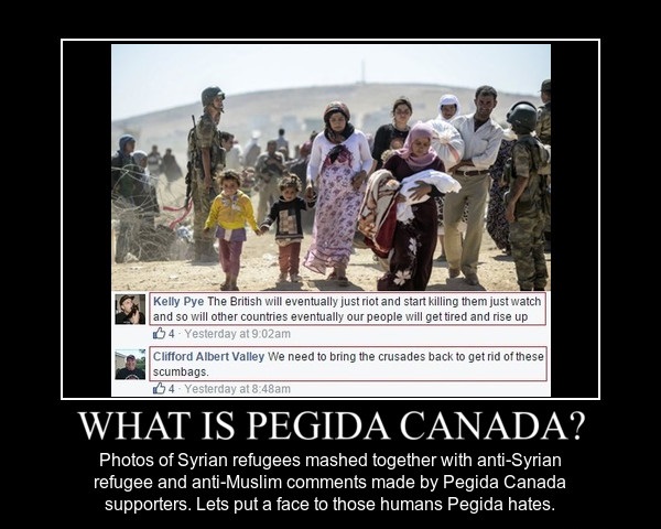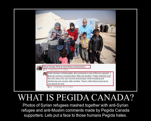 What now follows is a little art project we decided to engage in combining the hate rhetoric of PEGIDA Canada supporters with the targets of their hatred: