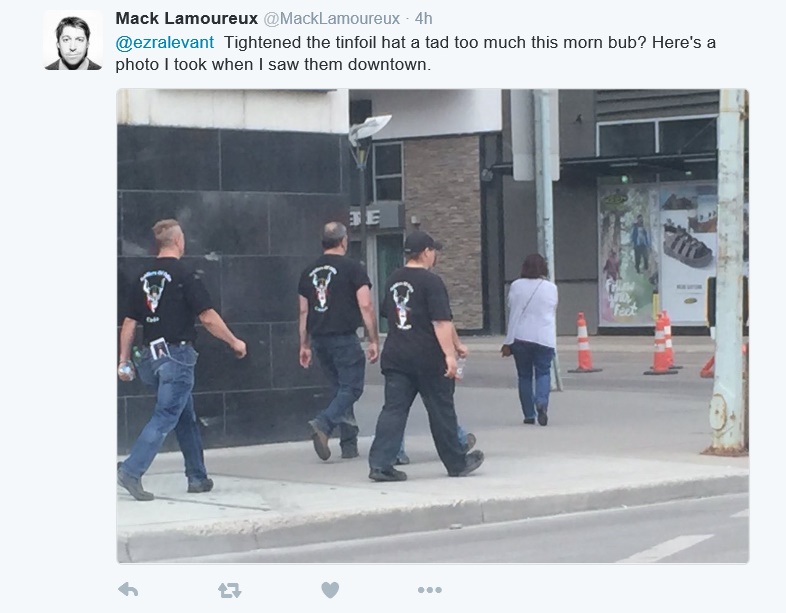 While we were working on our commentary yesterday on Mack Lamoureux's CBC story covering the activities of the Soldiers of Odin in Edmonton, we were also following an interesting exchange between Mr. Lamoureux and Ezra Levant on Twitter. Sadly, as Ezra isn't a fan of ours....