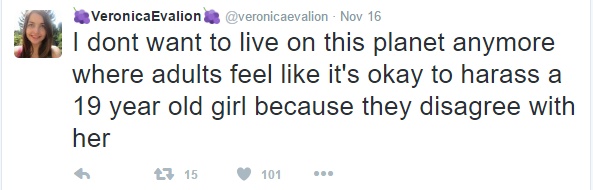 The thing is, Bouchard herself had no problem trolling others prior to her infamy. And while young, at 19 years old Bouchard is legally an adult and as such has made herself fair game in the sense that she can't expect that she won't face criticism and consequences for her views. However she still seems to think that while she attacks people who've views she objects to with impunity and doesn't expect the same in turn.