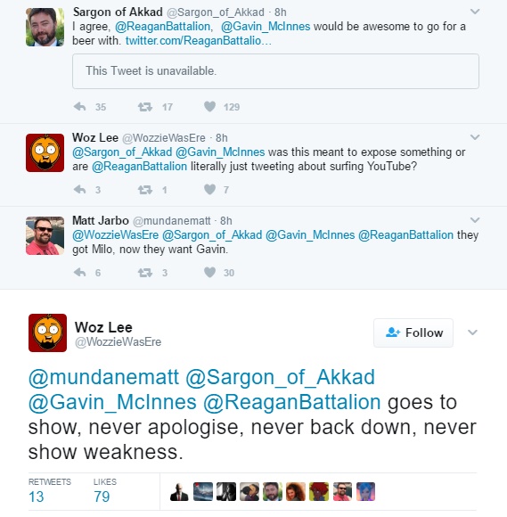 The glee of this contingent of the alt-right was very temporary though as McInnes, a man's man who says what he does and does what he says, desperately attempts to backpedal like a cat running away from a cartoon skunk: