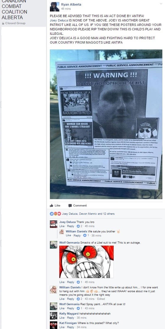 What you see on Never Again Canada and her Facebook is a flat out fabrication and sensationalized information to Garner sympathy and get other reactionaries to fund her sham of a movement. No matter who shows up on Treaty 1, [be they] Soldiers of Odin, Sandra Solomon, CCCC, WCAI, or any other "Patriot" group they will be met with resistance from not only FF1 Antifa but the citizens of this great multicultural, diverse and inclusive city. Let today be a lesson for any of you who want to spew hatred and ignorance here, we are waiting, we are watching. PEG CITY DON'T PLAY.Solomon is continuing on to Regina tomorrow....