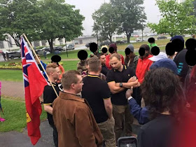 ReplyDeleteARC didn't make the claim and in and of itself the flag isn't, in this blog's view, the Canadian equivalent of the Stars and Bars. Unfortunately the Red Ensign HAS been adopted by the far-right in Canada who feel the flag used since 1965 reflects a multicultural vision of the country which they are repulsed by. Paul Fromm, a white nationalist based in Ontario, flies the Red Ensign at his events as did members of the Aryan Guard at their "White Pride" rallies:
