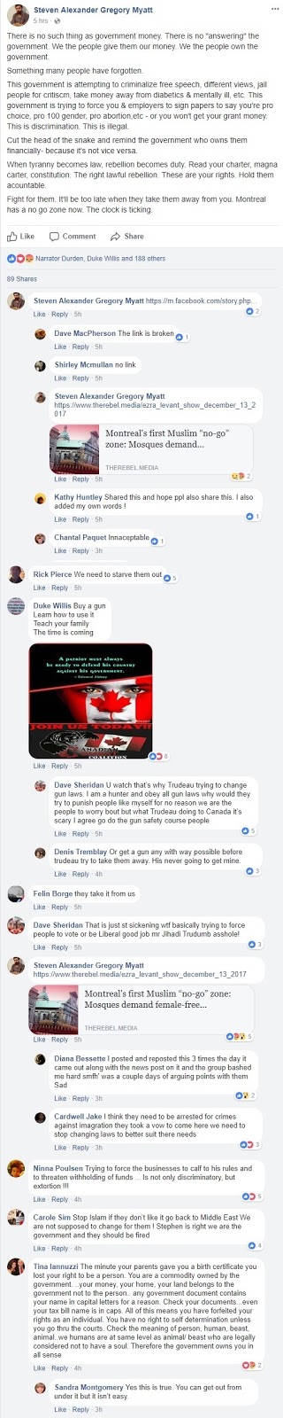 Sylvain Brouillette publie ceci sur la page Facebook de #laMeute. Il parle d'un "service de renseignements interne". Un des membres important de ce "service de renseignements" Sébastien Chabot, ne croit pas à la version officielle de fusillade de la mosquée. #onestpasracistes pic.twitter.com/wDNt8RHX8d— Le Troupeau (@LetroupeauQC) December 15, 2017
