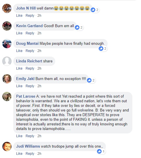It should go without saying at this point that what Linda Huskins is claiming, as of June 18, is not true. Then again they also are absolutely convinced that the mass murder at the mosque in Quebec was also committed by a Muslim despite the fact the murderer was an Islamophobic alt-righter (who also would likely have celebrated upon hearing news of a mosque burning); sentencing arguments in that crime are ongoing.
