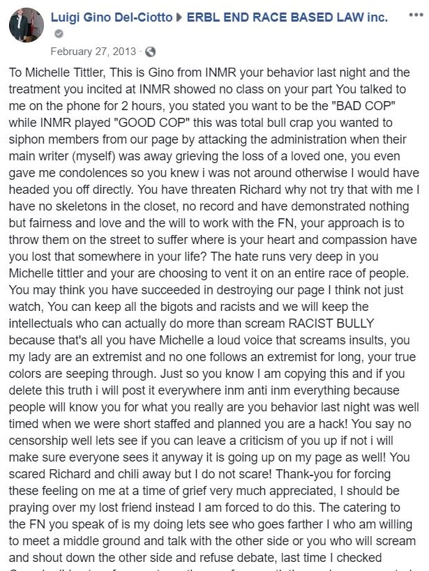 And her (essentially) one woman hate group targeting First Nations' peoples End Race Based Laws: