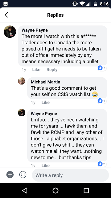 The individual in the last screen shot has indicated that at least two SoO members have shown up at his home and threatened him and his family.
