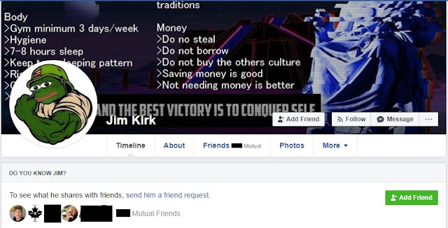 Kirkland also two other Facebook profiles under the name "Jim Kirk" containing some of the same white nationalist imagery and memes: