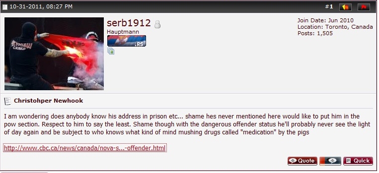 We've noticed that the Canadian section of the Blood & Honour forums has been pretty moribund. However we did check it out a few days and found this gem: