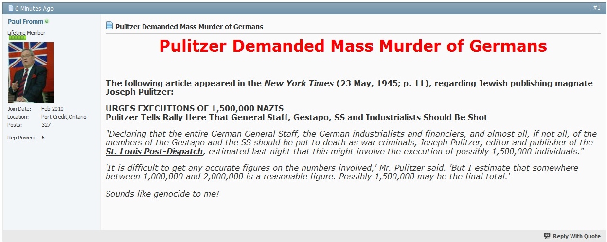 But let's look at this particular article in a little more detail. Does Pulitzer say that Germans should be murdered?
