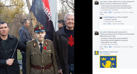 There is this too, along with Chris Alexander (CPC) and Marijka Stadnyk (Ukrainian Canadian Congress) deflecting questions about this group at one of their fundraisers. Petro Shkilnyk, the spokesperson in the video, was also in the parade (he's the RS goon with the grey cap at the point of their march.)