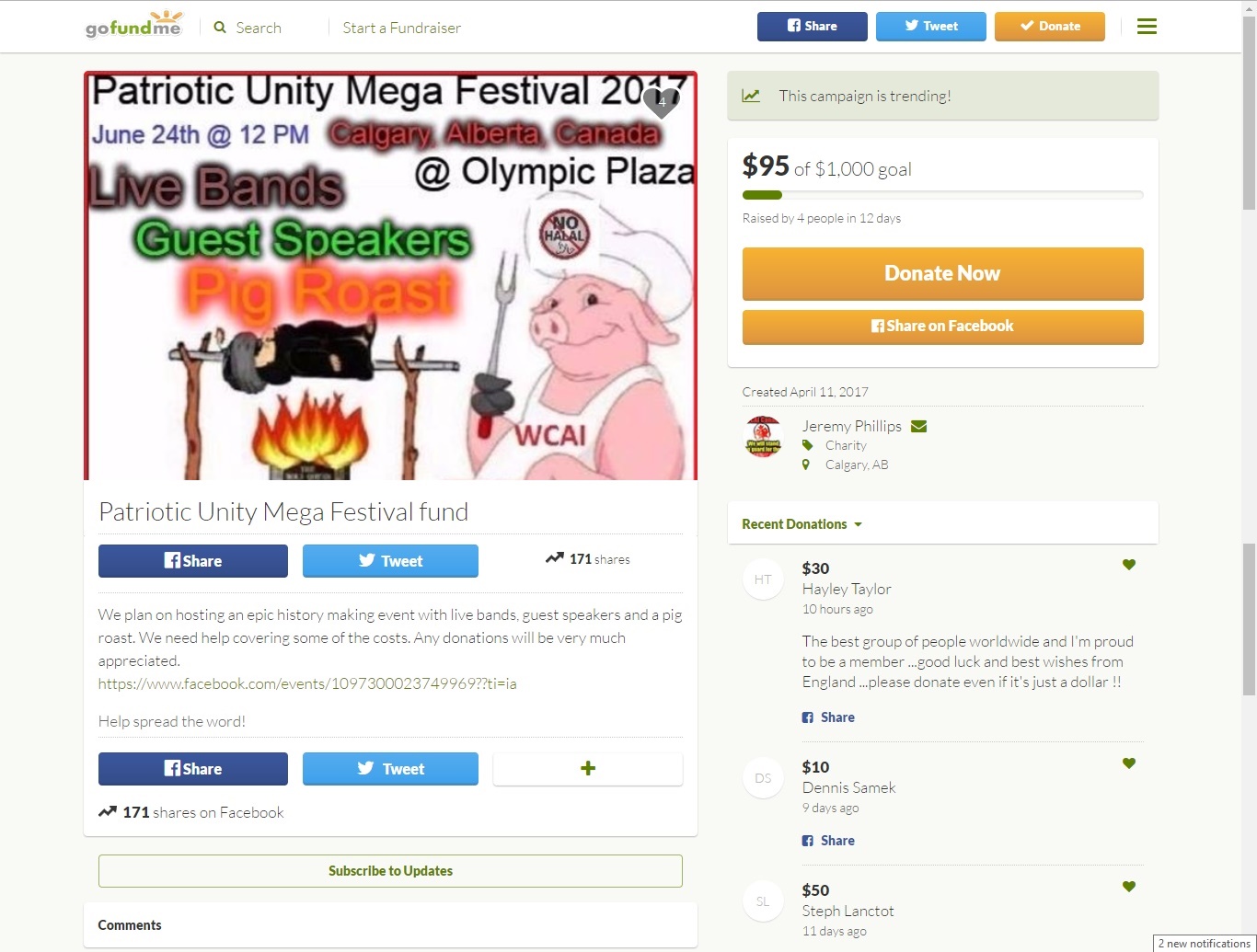 This too was taken down before a significant amount of money was amassed.