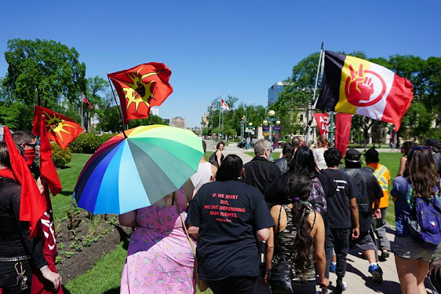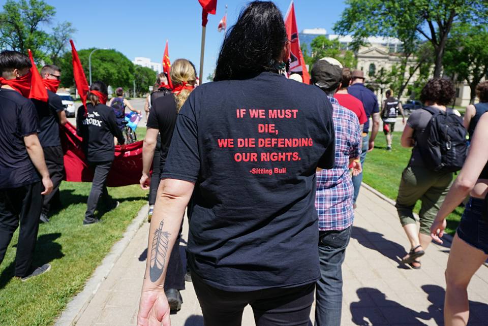 Eventually M. was released and was able to speak prior to the Trans March, part of the weekend’s Pride activities. FF1-Fascist Free Treaty One, was joined by strong contingents from the Urban Warrior Alliance, American Indian Movement (AIM), Crazy Indian Brotherhood, LGBTQIA2* activists, and many others.