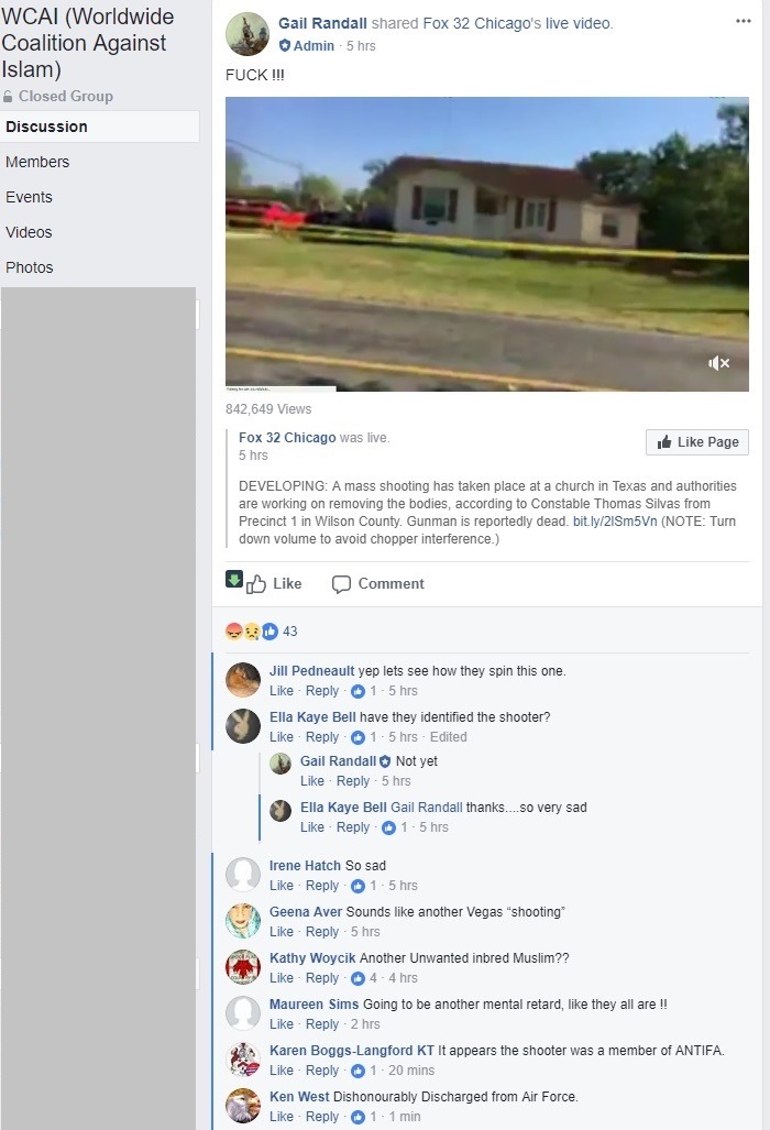 Tuerie au Texas. Les membres de #LaMeute, sans aucune source qui corrobore cela, disent que c'est l'oeuvre d'un musulman. #onestpasracistes pic.twitter.com/2MoirHm9Ue— Le Troupeau (@LetroupeauQC) November 5, 2017