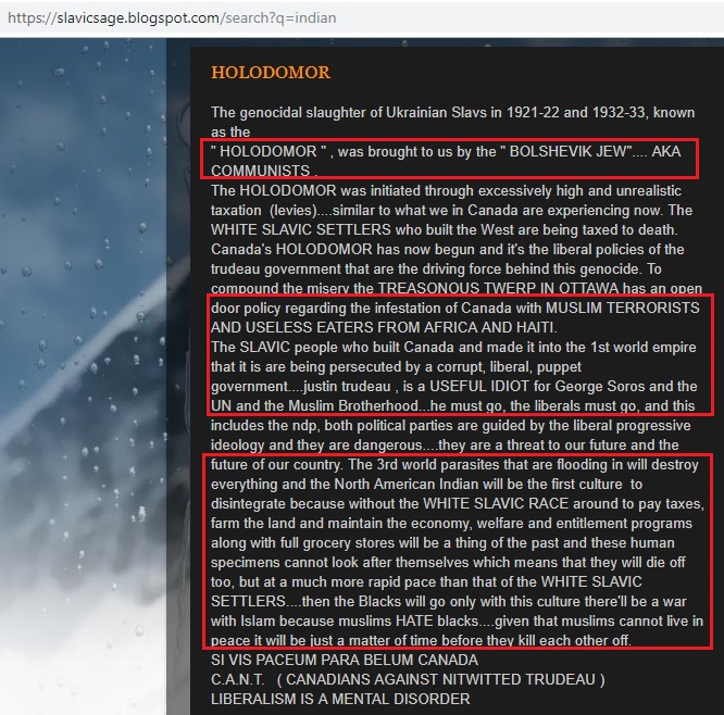 The Canadian Anti-Hate Network wrote about him and his racist blog (an example of one article is included above) in a great deal of detail as well as his connection to the Yellow Vest convoy traveling to Ottawa:
