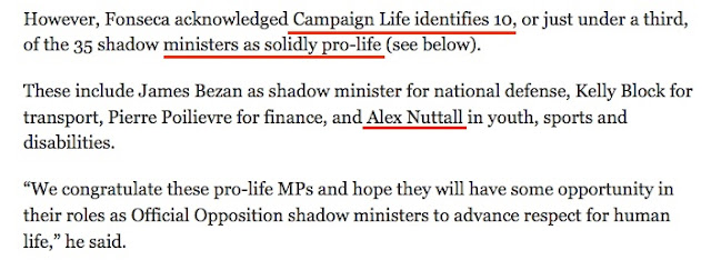 9. On September 7, 2017, Nuttall was identified by Campaign Life as one of 10 "solidly pro-life" MPs.
