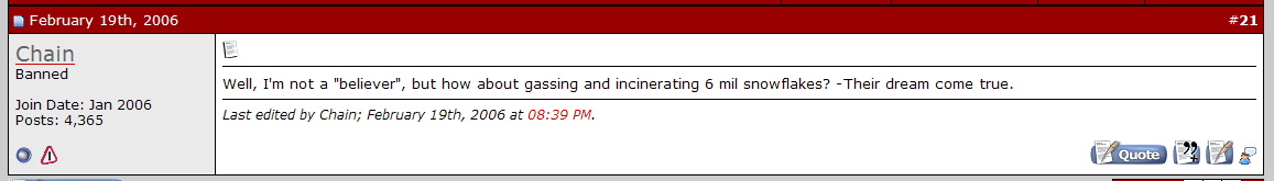 But as we wrote, you needn't take our word for it. Check it out for yourself. You can also head on to VNN and take a look at what he posted there until he was banned (a bit of a spat with Alex Linder) including gems such as these: