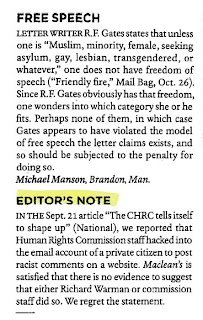 That decision, about neo-Nazi John Ross Taylor, upheld the law as a justifiable limit on free expression largely because of its supposedly remedial, non-punitive purpose. But Mr. Hadjis found that that, today, the pursuit of Section 13(1) cases "can no longer be considered exclusively remedial, preventative and conciliatory in nature." Rather, the law "has become more penal in nature."